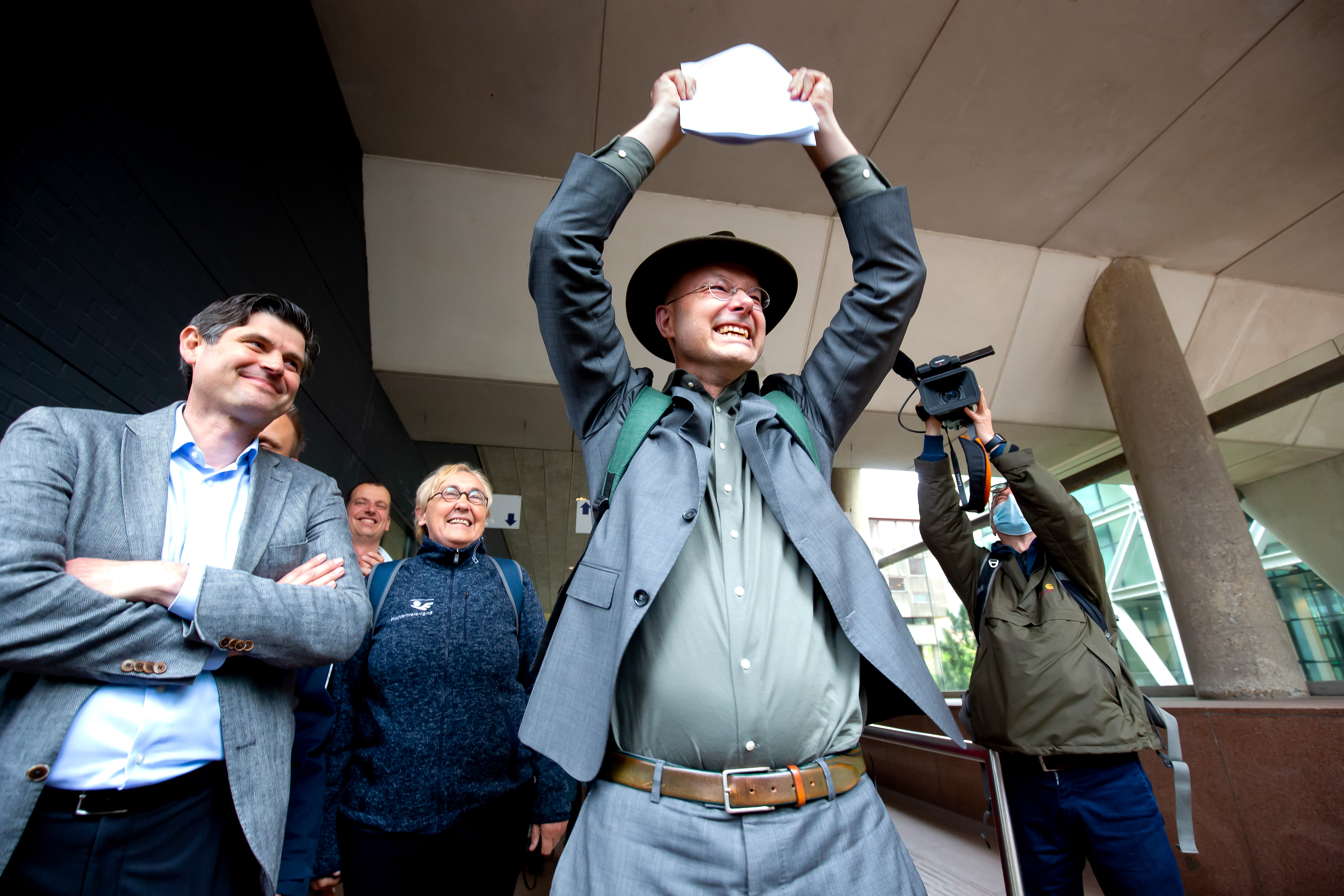 Uitspraak Klimaatzaak Shell, Milieudefensie directeur Donald Pols en advocaat Roger Cox, 2021