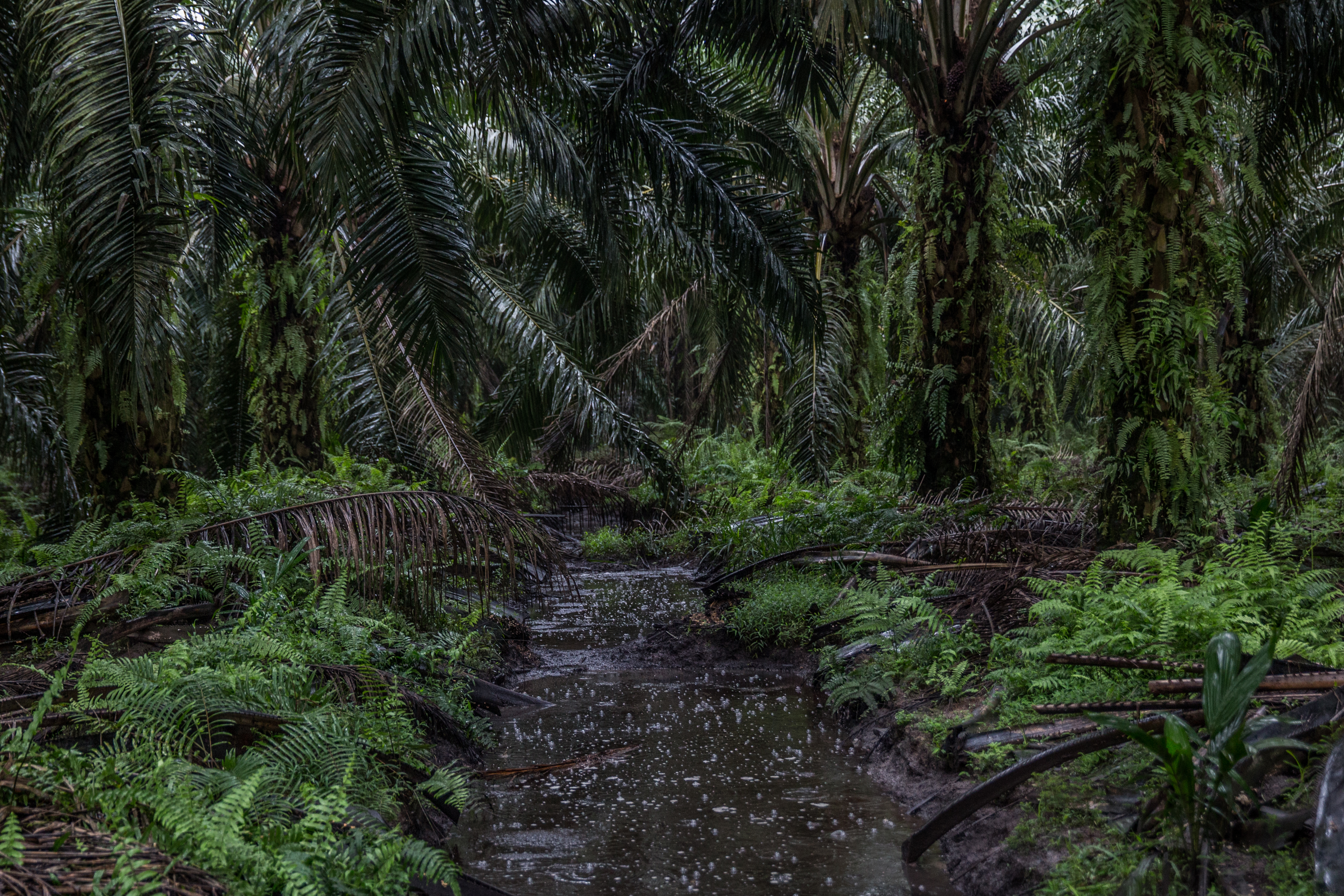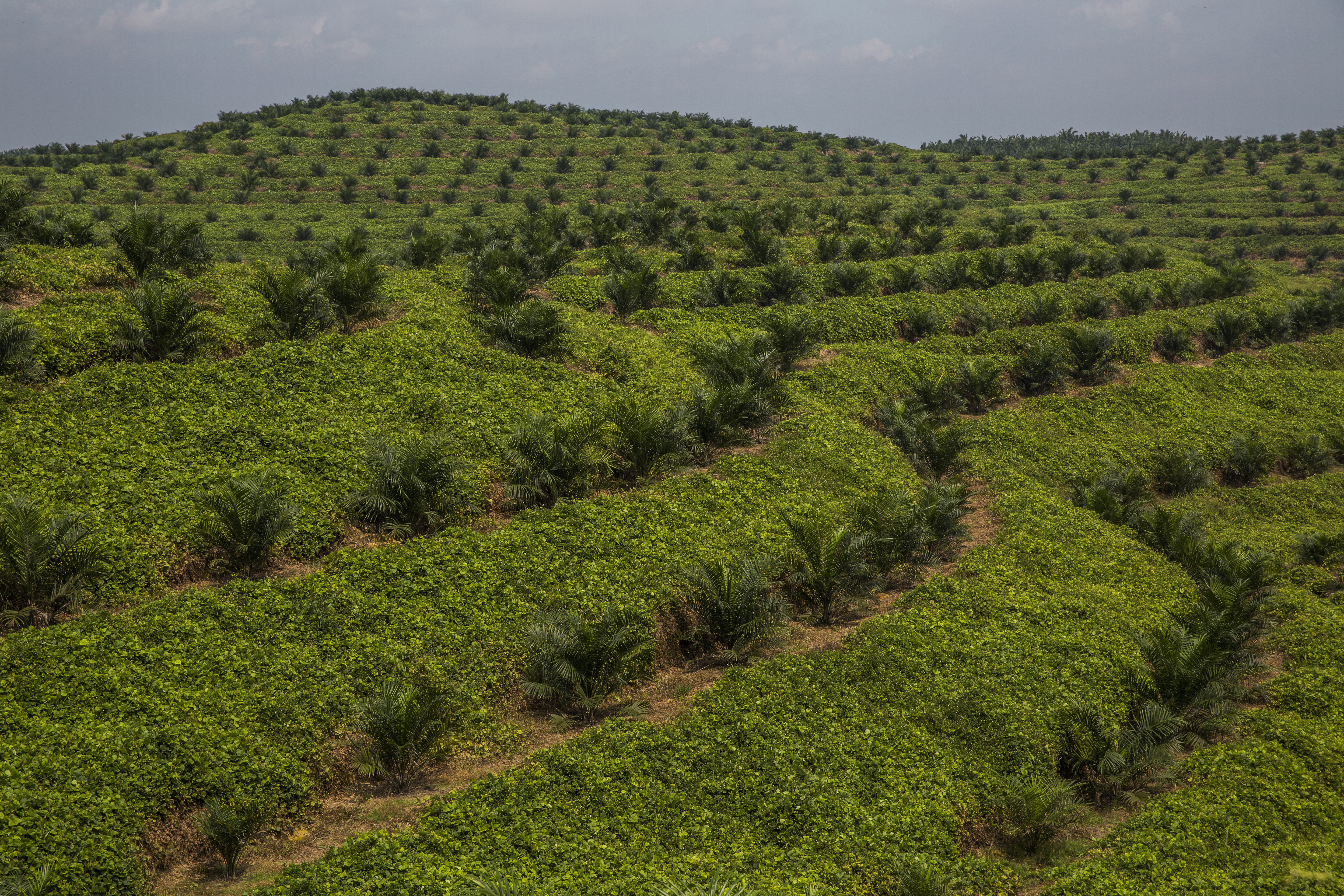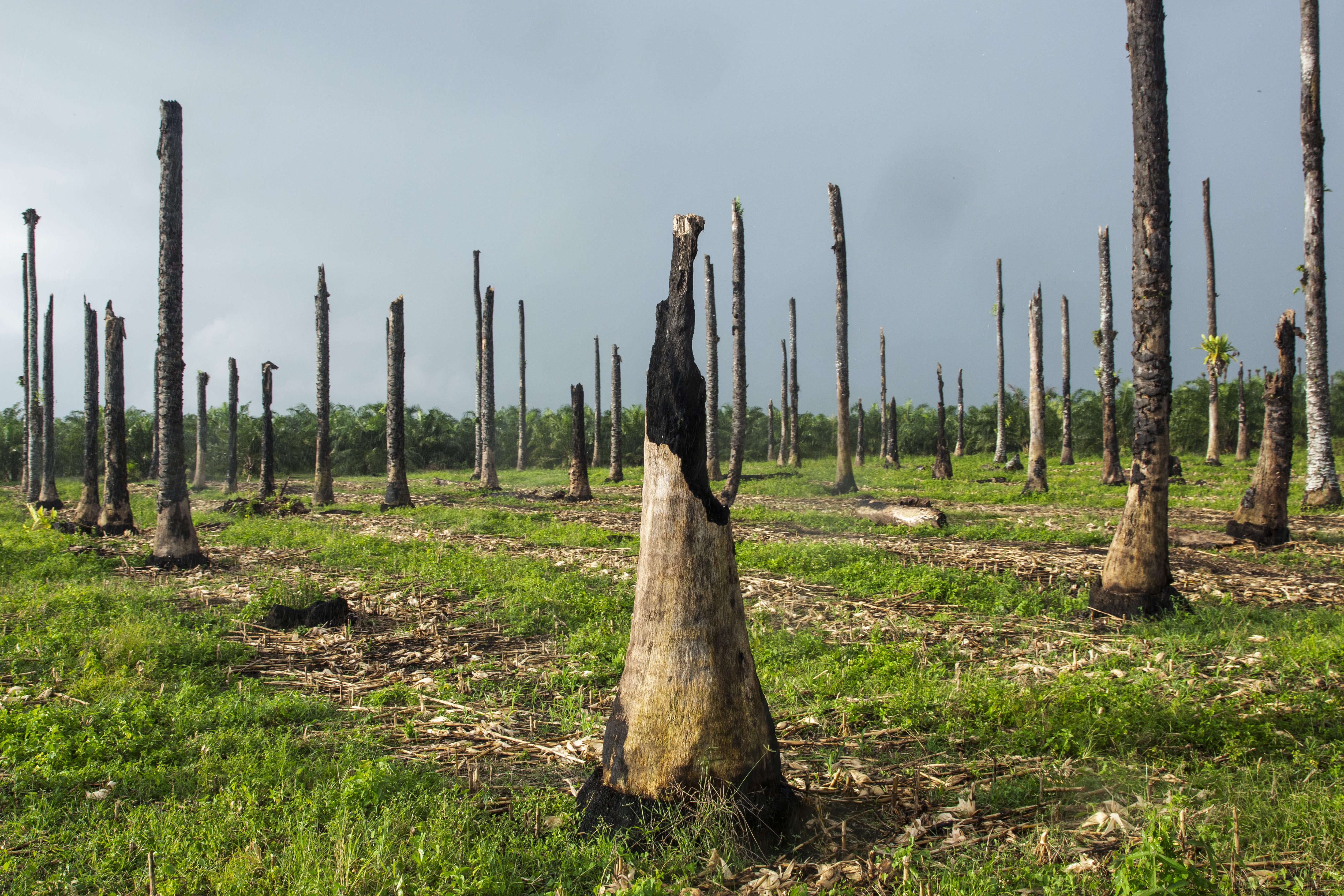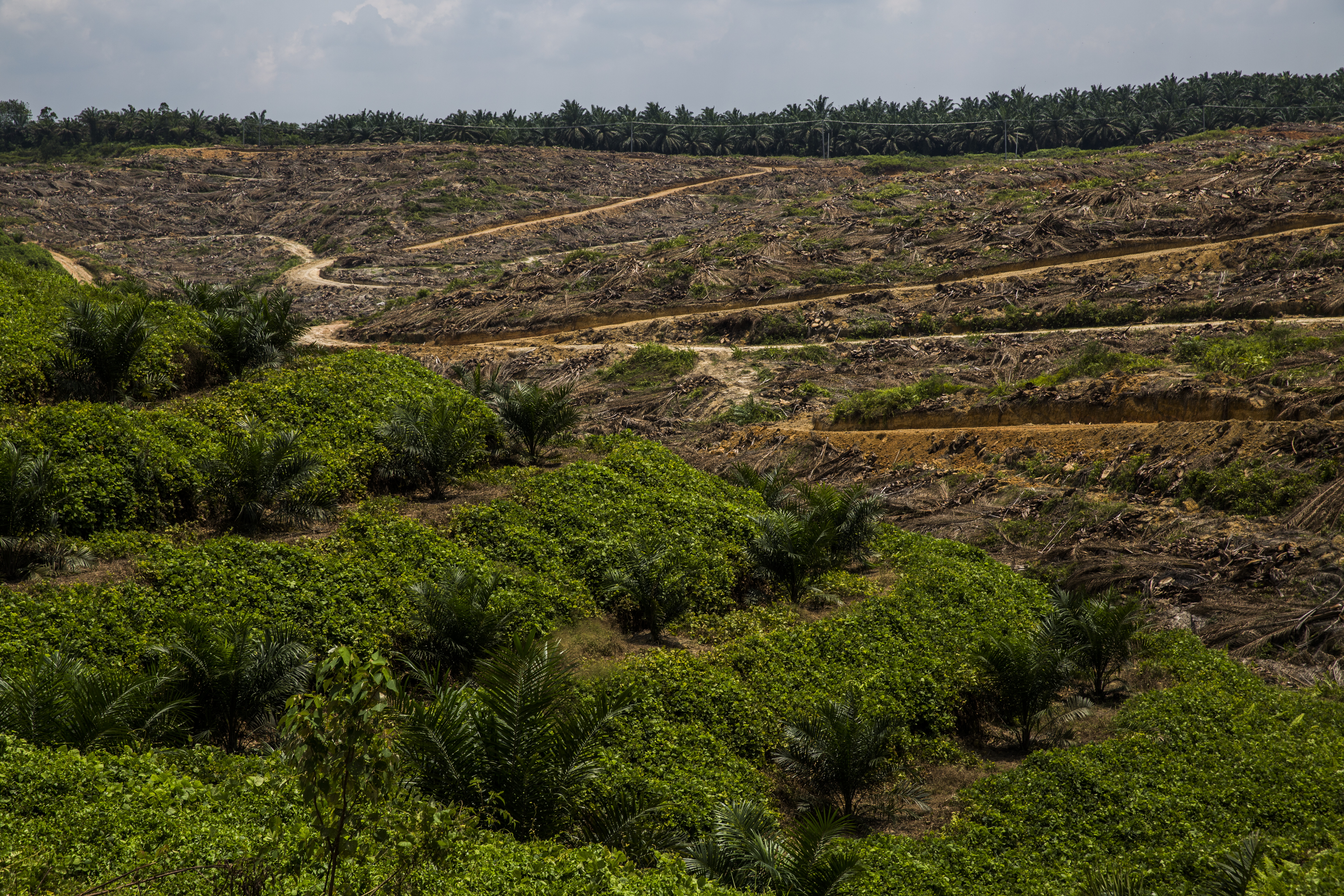 Oprukkende palmolieindustrie bij het dorp Pungkat, Indonesië. Foto Ed Wray