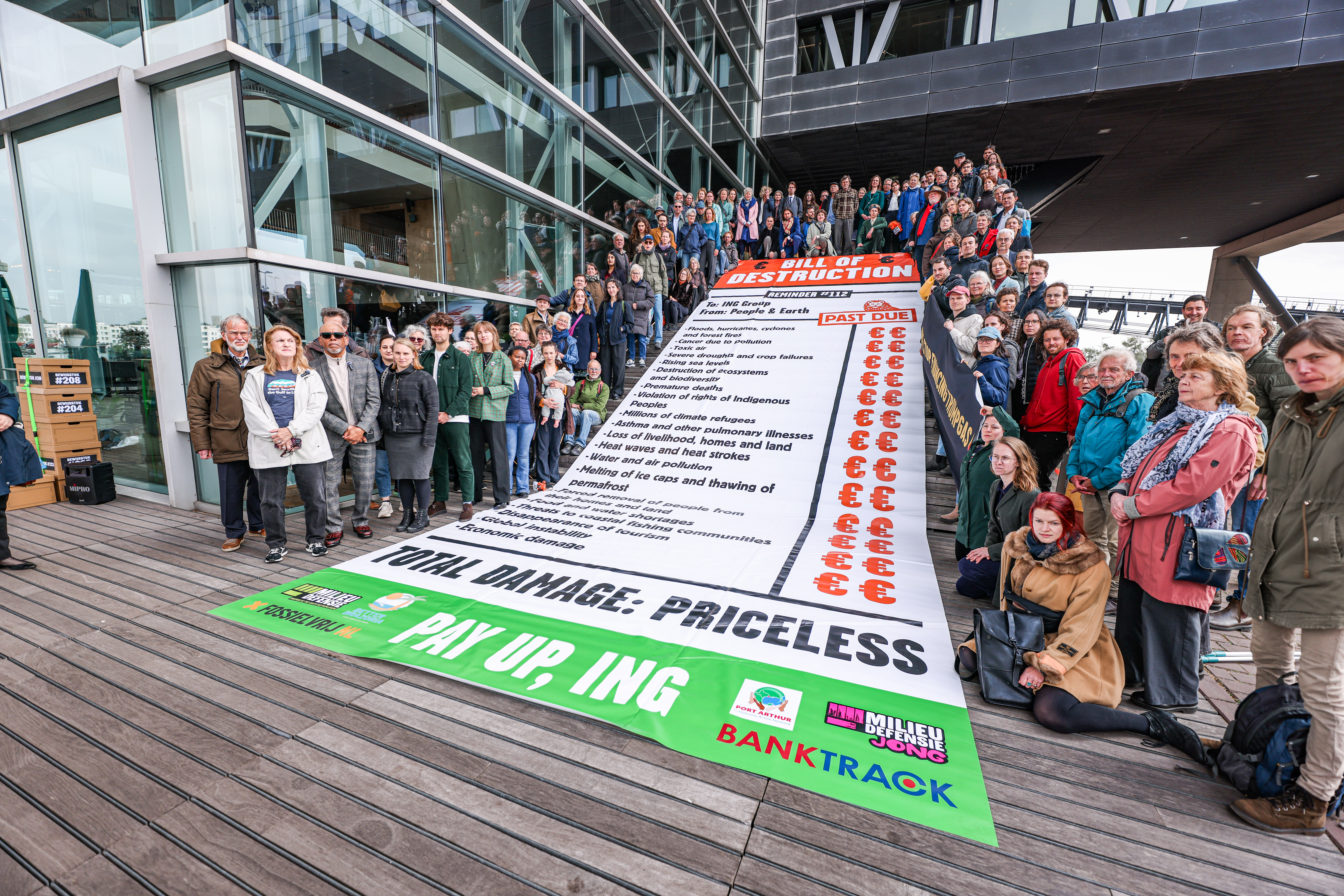 Activisten tonen de 'bill of destruction' van ING