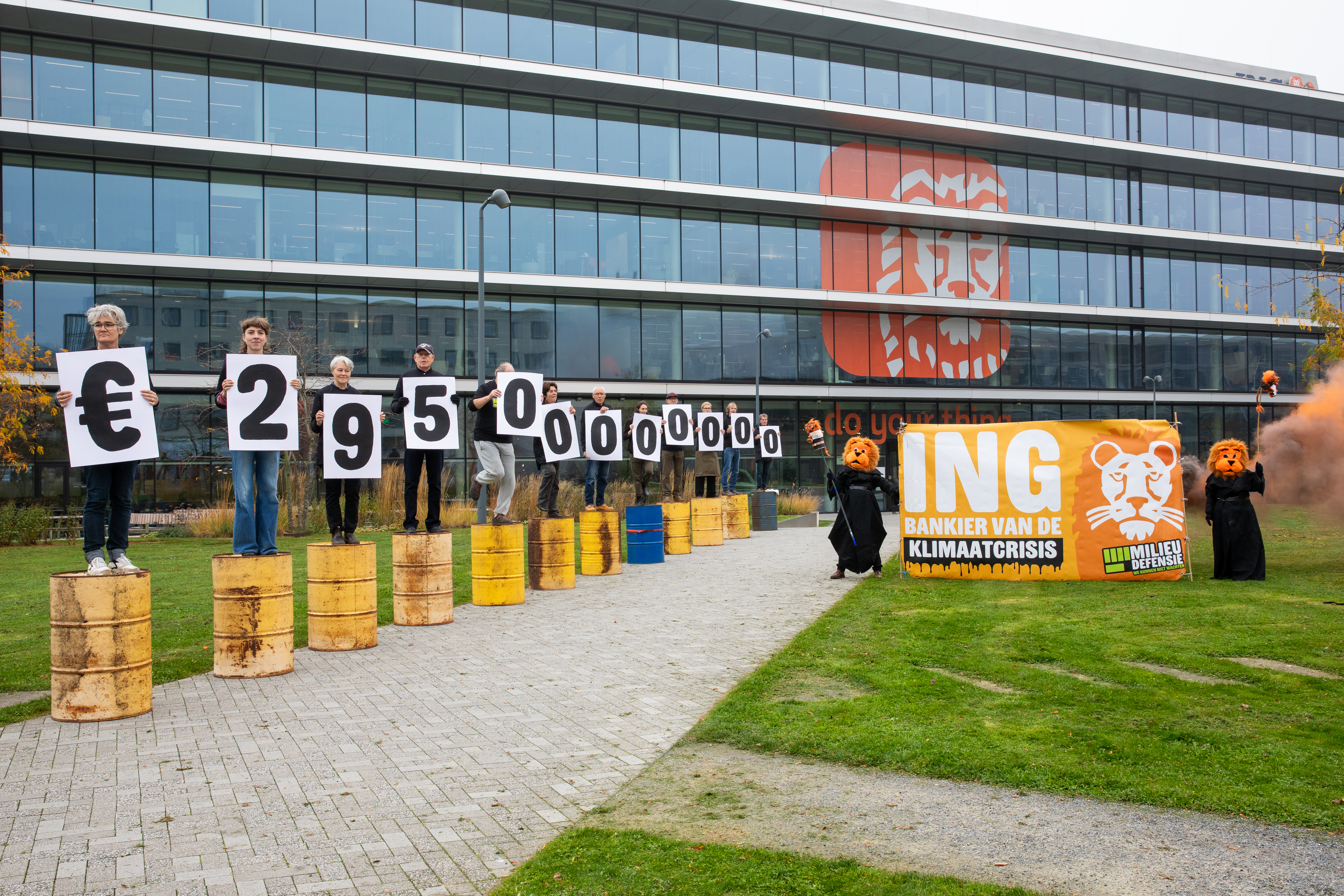 Mede-eisers tillen de dagvaarding richting het ING-hoofdkantoor